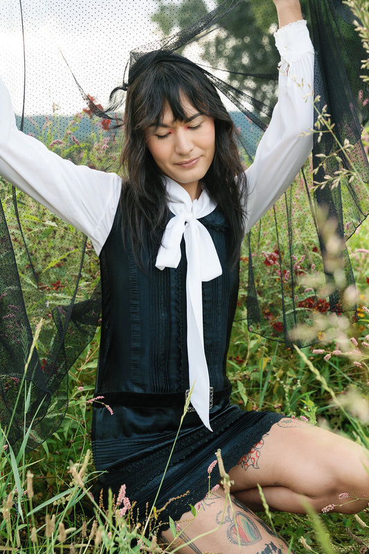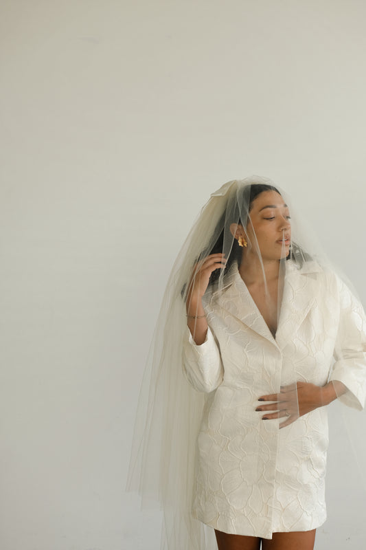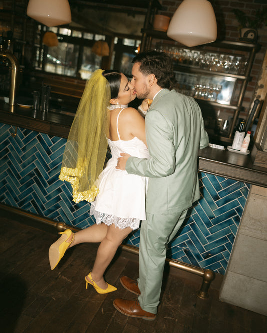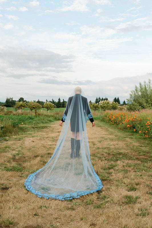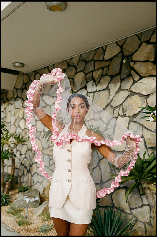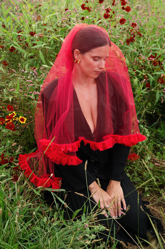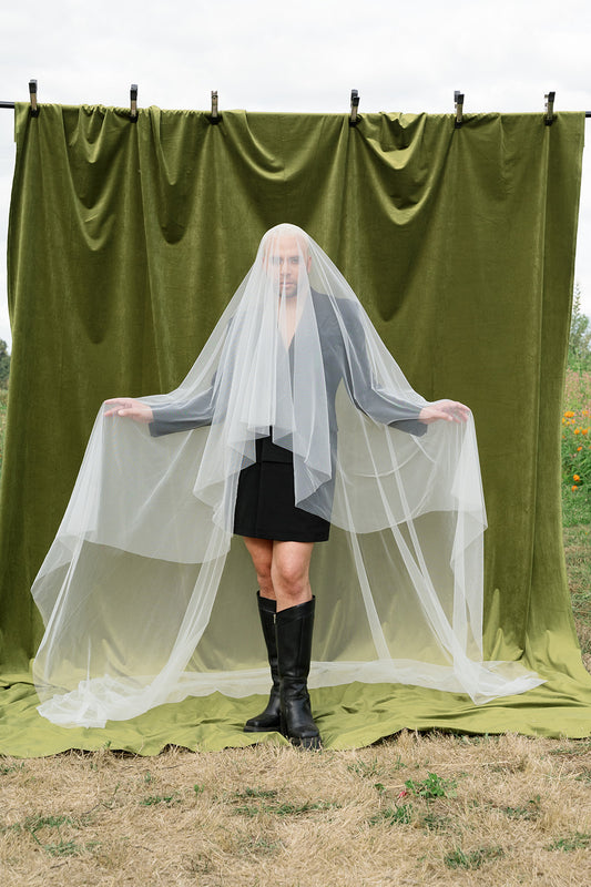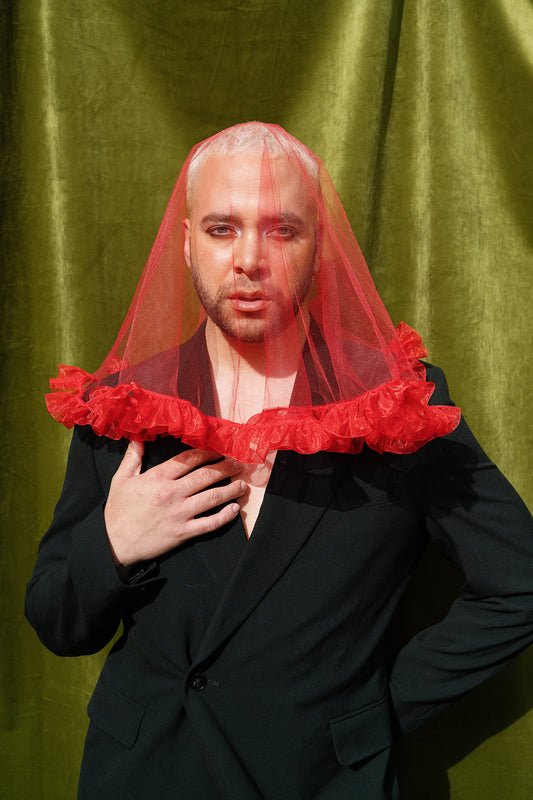 The inaugural Collection is a study in contrast: classic wedding veil silhouettes reimagined with color, attitude, and edge. From soft ivory layers with vintage-inspired volume to cherry red minis, each piece nods to tradition while stepping firmly into something new. Designed in Portland and made by hand, these veils are ready to wear to the chapel.